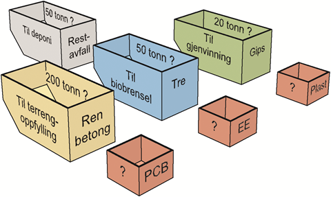 Kildesortering: sortering av avfallet der avfallet oppstår, det vil si på bygge- eller riveplass