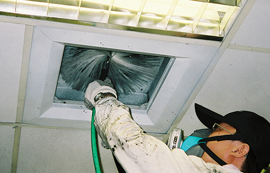 Innføring av en roterende børste i en sirkulær ventilasjonskanal