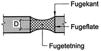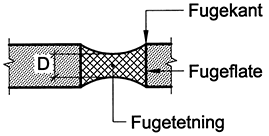 Fugedybde: dybden på fugetetningen målt midt på fugen (se fig. 02 )