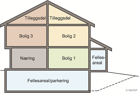 Bygninger kan seksjoneres til ulike eierseksjoner.