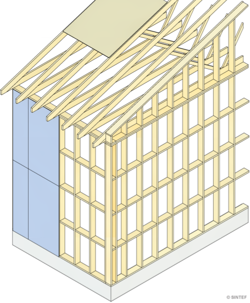 Eksempel på bindingsverk for bygning med stor vegghøyde