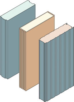 Dette bladet behandler yttervegger og tak av lette sandwichelementer med kjerne av plast- eller mineralullisolasjon og yttersjikt av metallplater eller glassfiberarmerte plastplater.