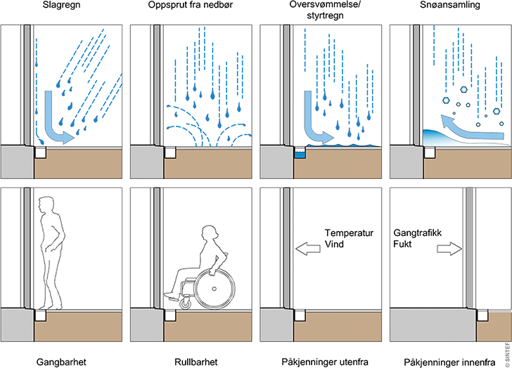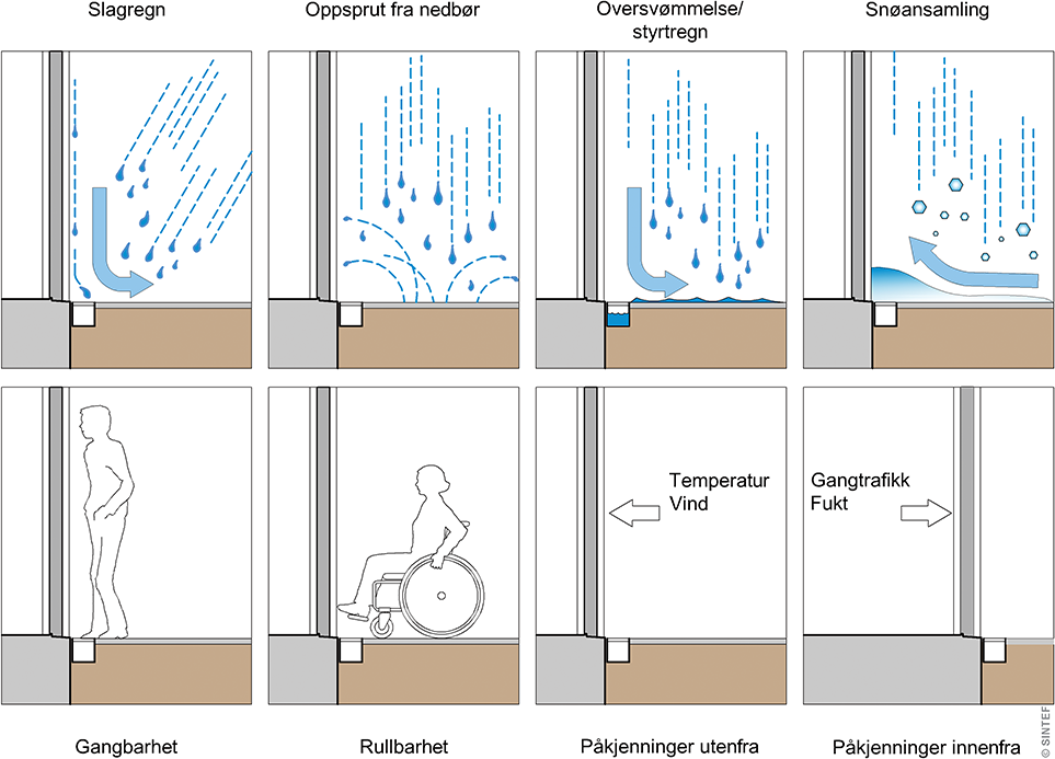 Eksempel på påkjenninger og funksjonskrav som må ivaretas ved prosjektering av trinnfri inngang