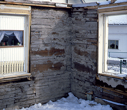 Knubbehus. Bolig under riving. Foto: Fredrikstad Museum