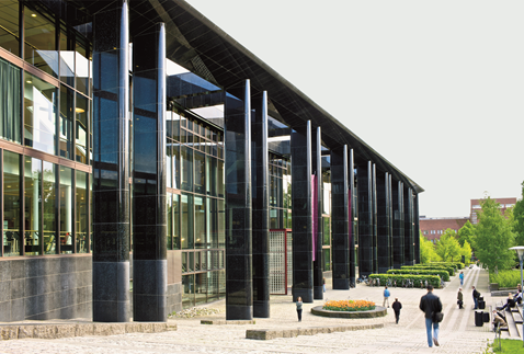 Eksempel på bruk av larvikitt. Universitetsbiblioteket i Oslo, Georg Sverdrups hus
