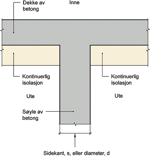 Denne anvisningen inneholder punktkuldebroverdier, ψ (W/K), for tilslutning mellom søyle av betong og dekke av betong. Se fig. 01.