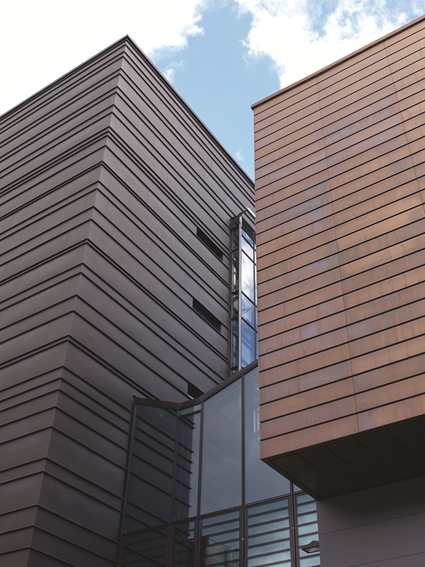 Fasadekledning av metall på Kuben yrkesarena. Arkitekt: Arch Uno AS / Arkitektpartner AS. Foto: arkitekten