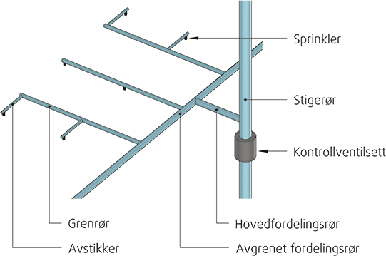 Hovedkomponentene i et sprinkleranlegg