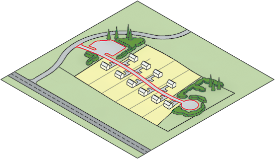 Anvisningen må ses i sammenheng med Planlegging 312.013 Planlegging av småhusområder. Stortomtmetoden, som forklarer stortomtprinsippet og hvordan veisystemet er «ryggraden» i en stortomt.