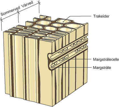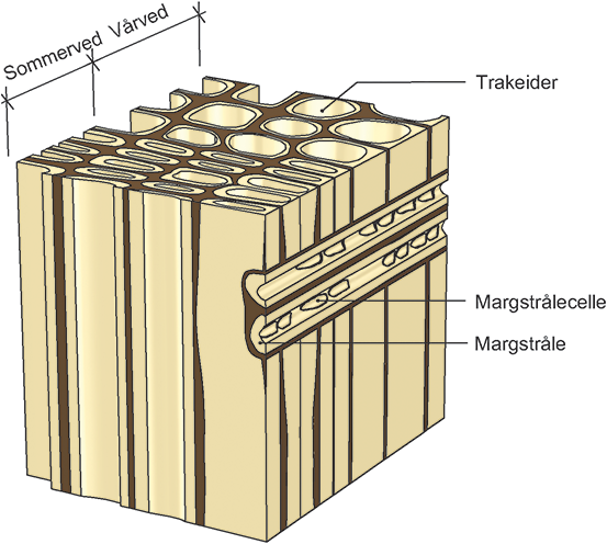 Skjematisk oppbygning av fiberstrukturen i trevirke