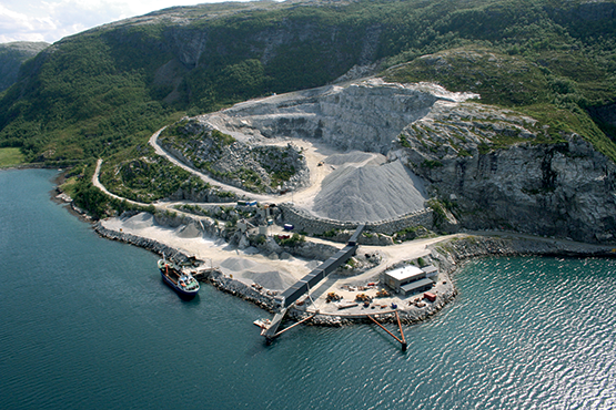 Pukkverk med masseuttak i Osen i Sør-Trøndelag. Foto: NorStone