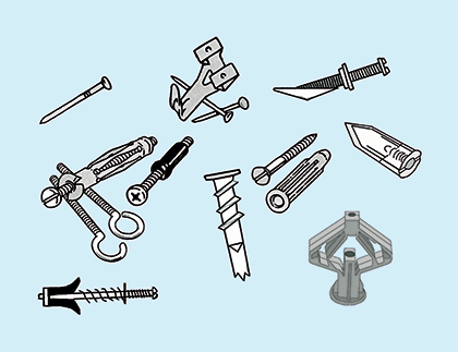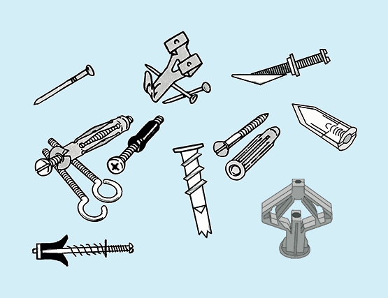 Festemidler for å henge opp lette gjenstander i bygningsplater