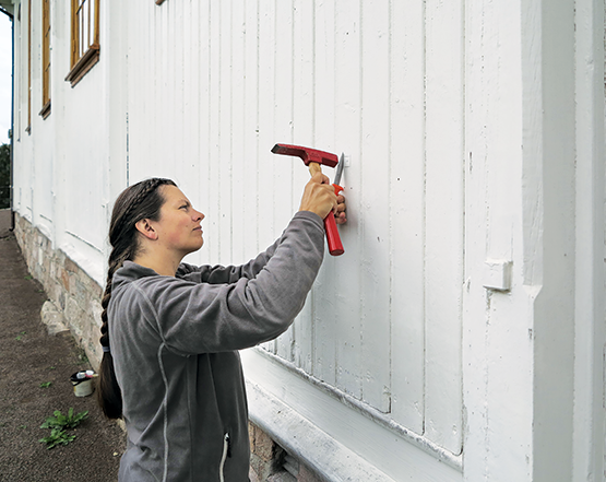 Prøvetaking av maling på vegg. Foto: Mycoteam AS