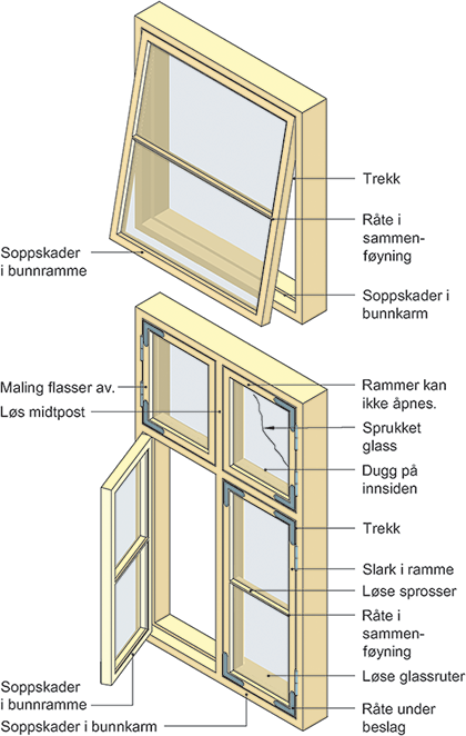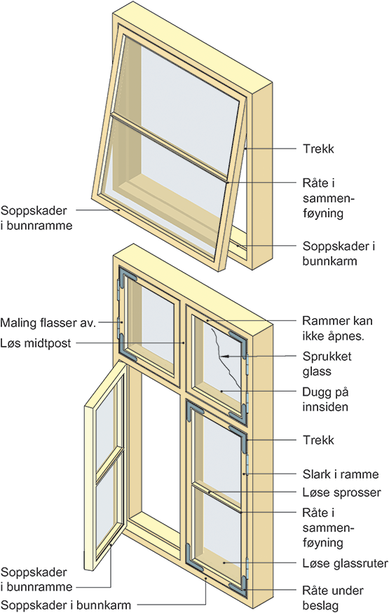 Vedlikehold og enkle reparasjoner av vinduer er behandlet i Byggforvaltning 733.301 Vedlikehold av vinduer og ytterdører. Se også Byggforvaltning 723.638 Utskifting av vinduerog Byggforvaltning 733.161 Eldre vinduer. Vindusformer og materialer.