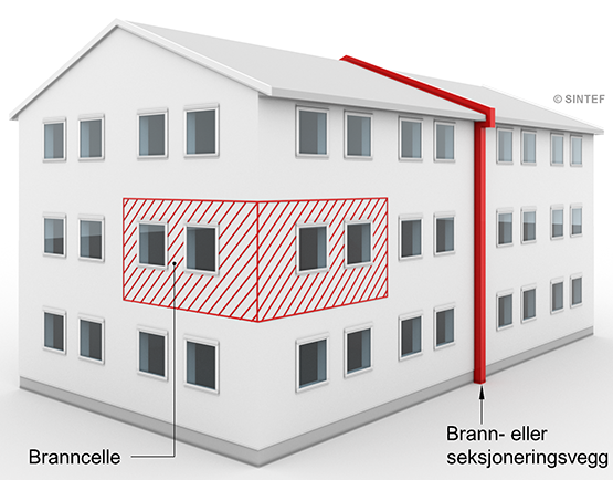 Bygninger skal deles opp i brannceller og brannseksjoner på en hensiktsmessig måte.