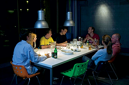 Det sosiale fellesskapet er en viktig del av hybeltilværelsen. Fellesareal i Tietgenkollegiet i Ørestad, Danmark. Arkitekt: Lundgaard og Tranberg arkitekter AS. www.tietgenkollegiet.dk. Foto: Sten Lange