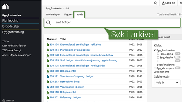 Du kan også søke etter utgåtte anvisninger i Byggforskseriens arkiv.